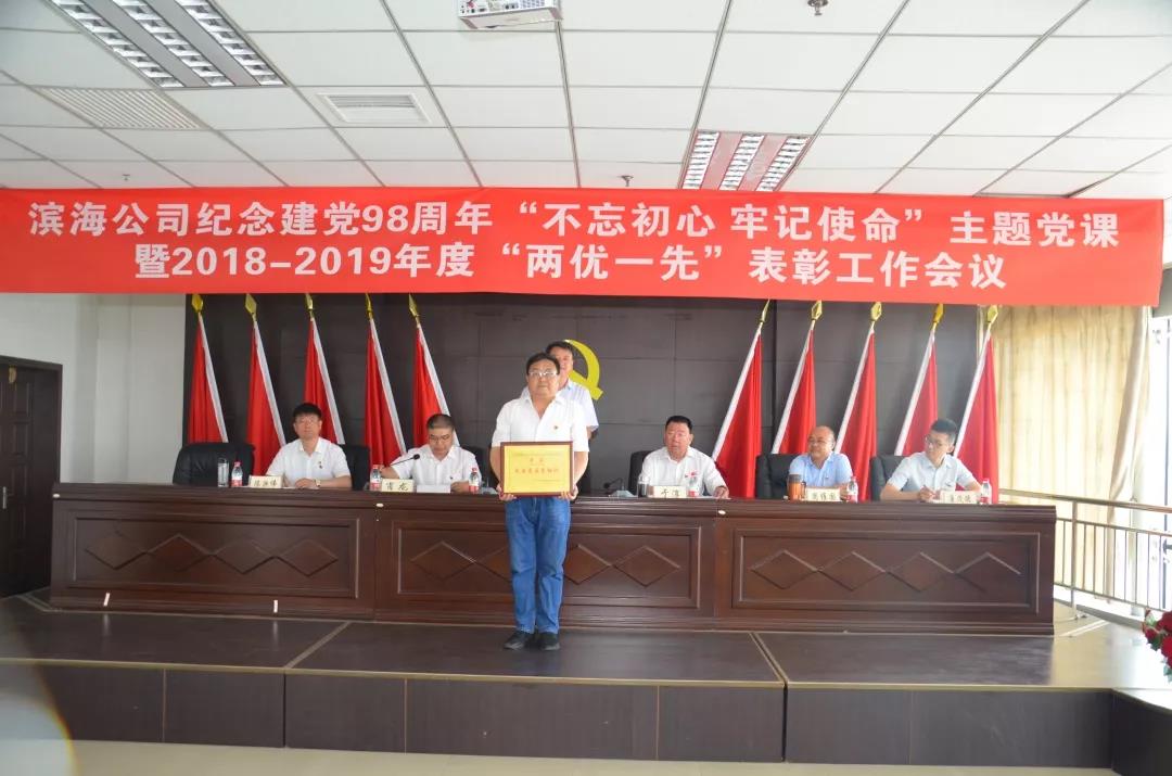 | 【不忘初心、牢记使命】滨海公司召开纪念建党98周年“不忘初心 牢记使命”主题党课暨2018-2019年度“两优一先”表彰工作会议 |