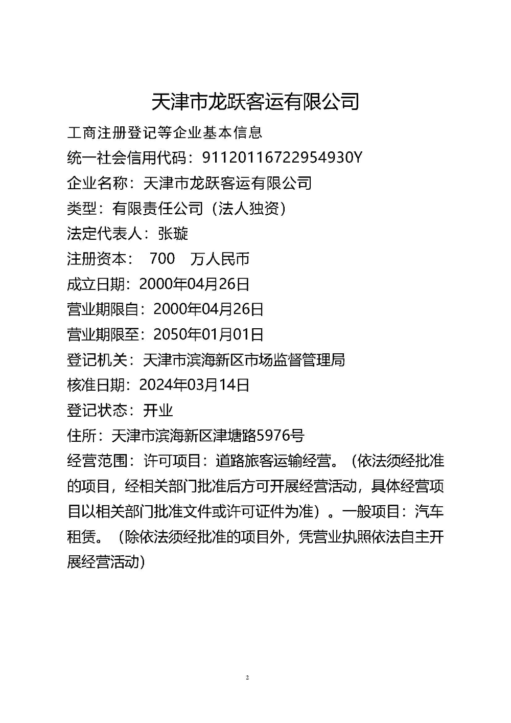 天津市龙跃客运有限公司