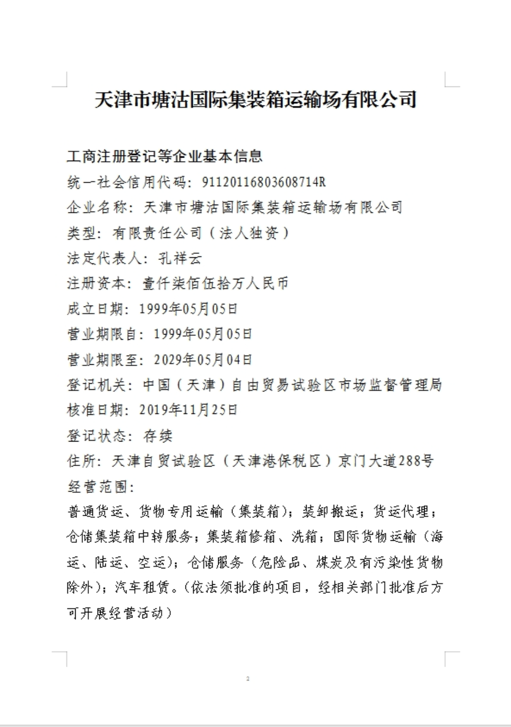 天津市塘沽国际集装箱运输场有限公司