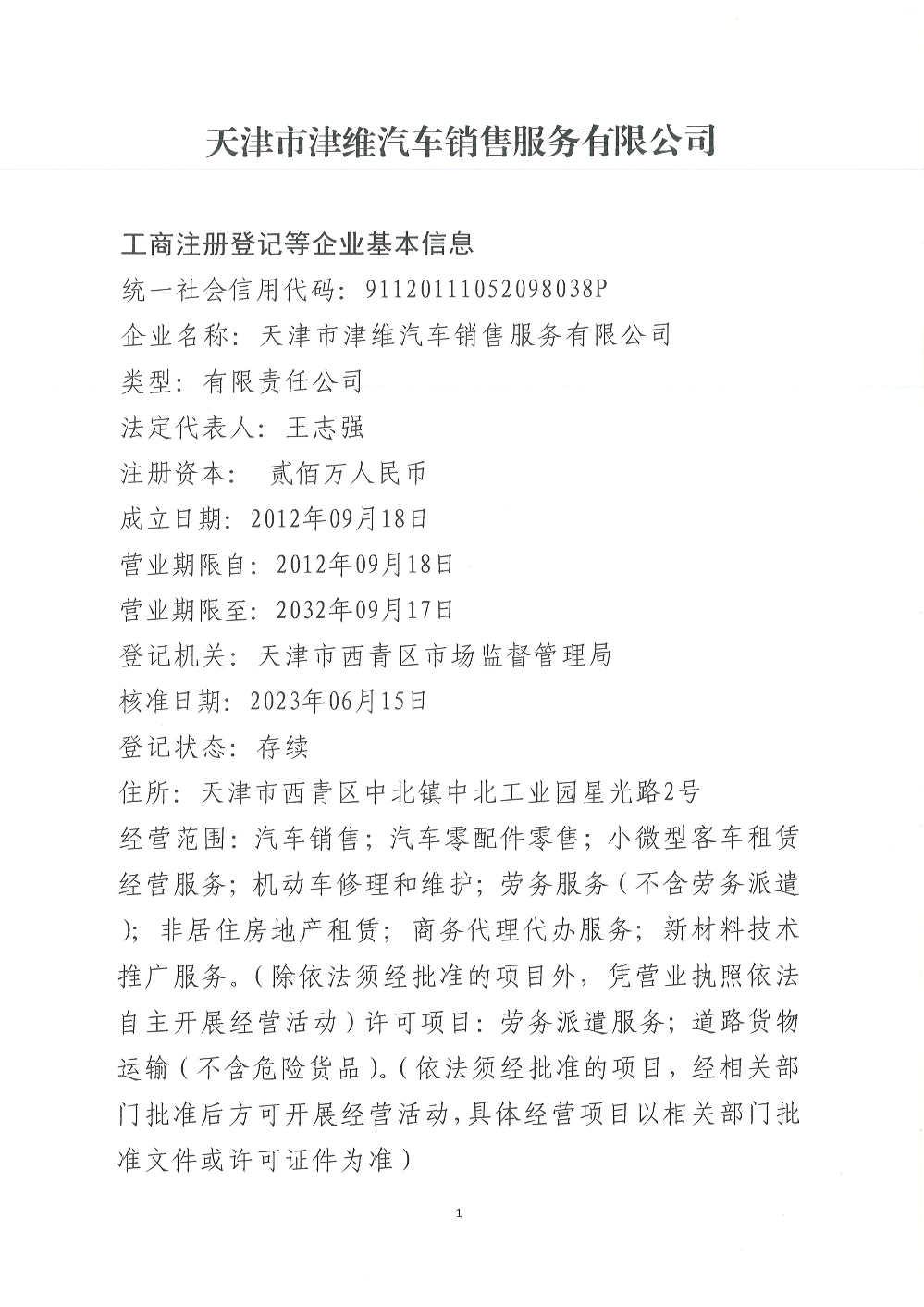 天津市津维汽车销售服务有限公司