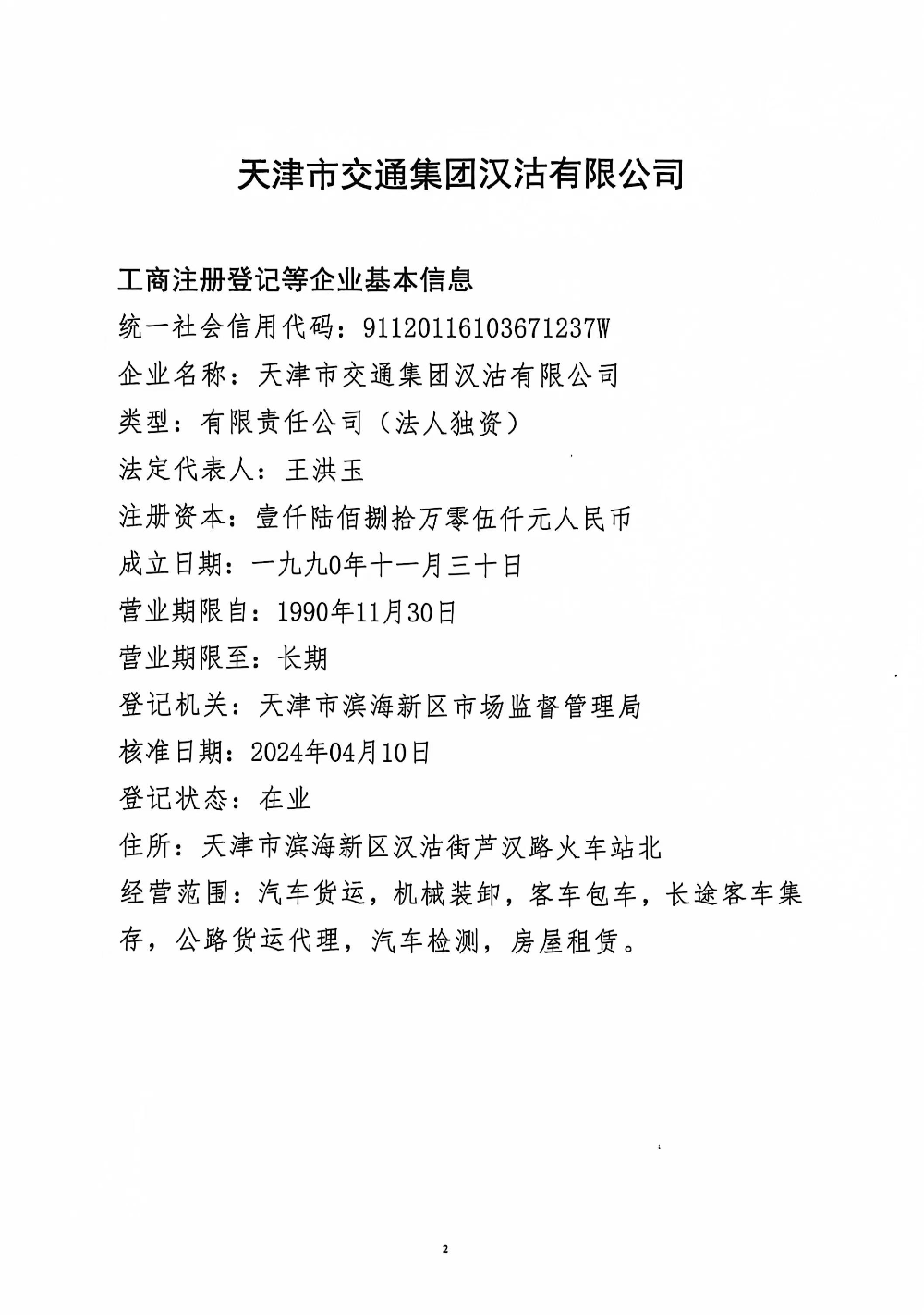 天津市交通集团汉沽有限公司